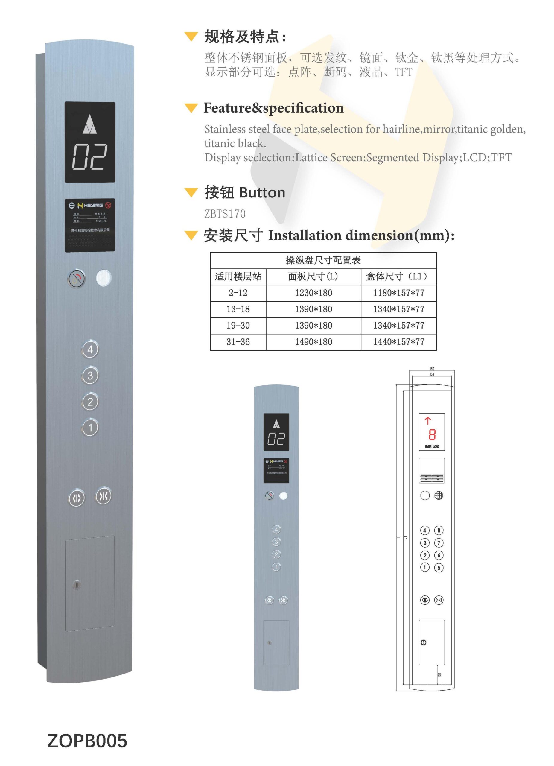 Be the first to review “ZOPB005 COP For Elevator”